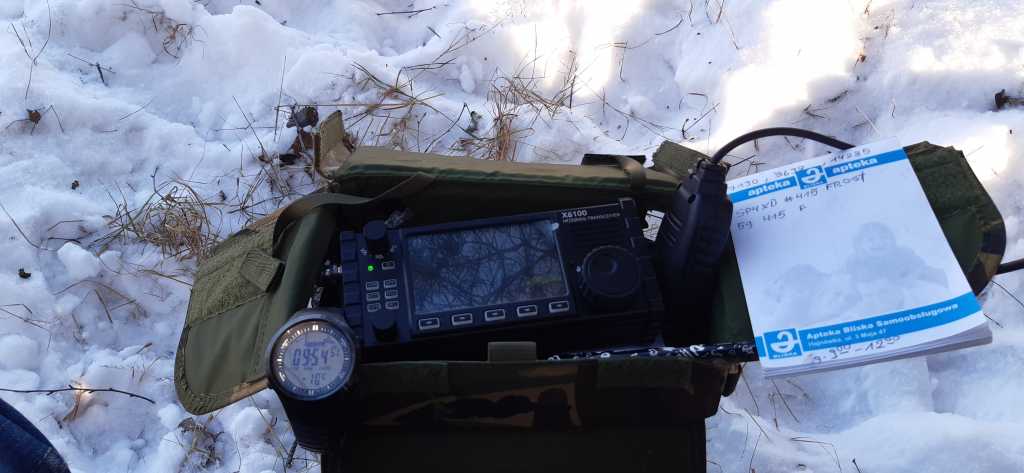 Antena : 20m END FEED+1:64balun, TRX Xiegu X6100 5W.Temp. -11,-10 slonce i mnogo sniega