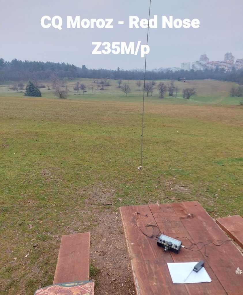 I took part in CQ Moroz – Red Nose operating from a forest park in Skopje using an Elecraft KX2, 5 W, and a 5-meter vertical antenna with four radials laid out on the ground. The temperature was +2 °C. All 68 QSOs were made on 14 MHz using CW, including contacts with POTA and WWFF hunters who were not contest participants. Among the participants operating portable, QSOs were made with R4NCU/P, RW3AI/P, RV9CVA/P, UA3DLD/P, RX3ALL/P, RV6AWH/P, R7DE/P, and R1BBG/P.